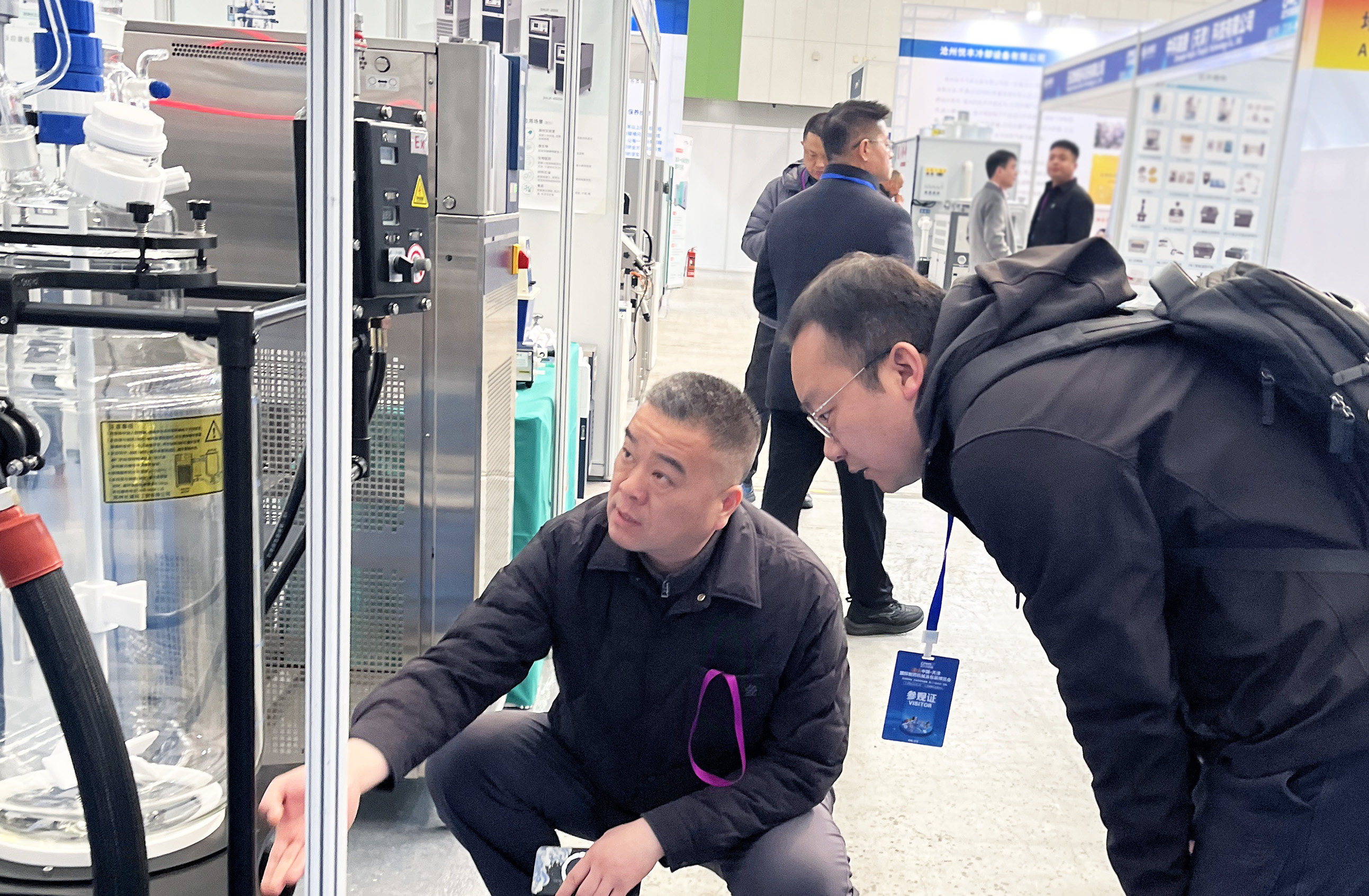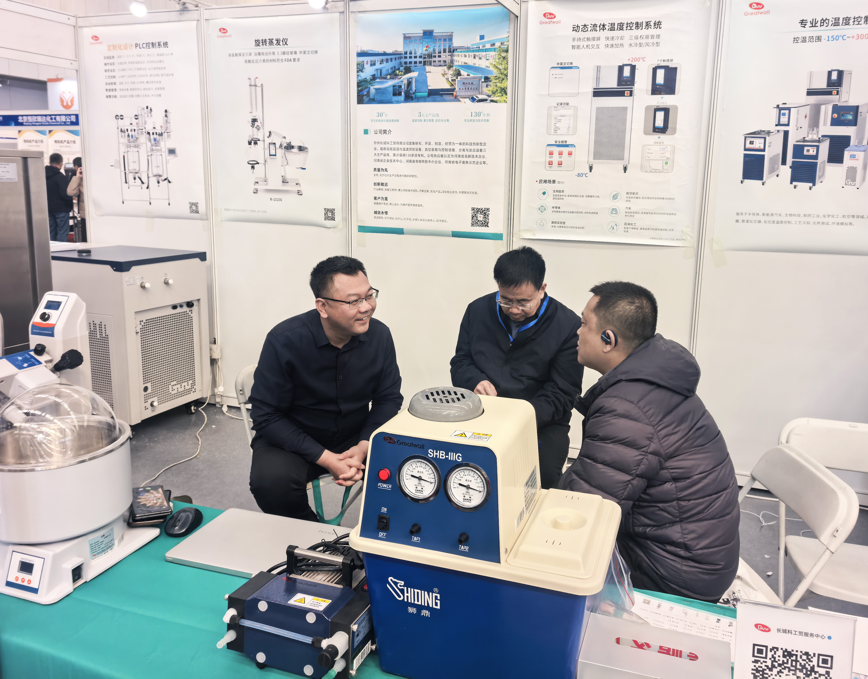 開展首日,長城科工貿展位便吸引了大量制藥企業、科研院所及行業專家駐足交流。從調速玻璃反應釜到旋轉蒸發儀,從防爆密閉制冷加熱循環裝置到動態流體溫度控制系統,每一款展品前都圍滿了前來咨詢、洽談的專業觀眾。